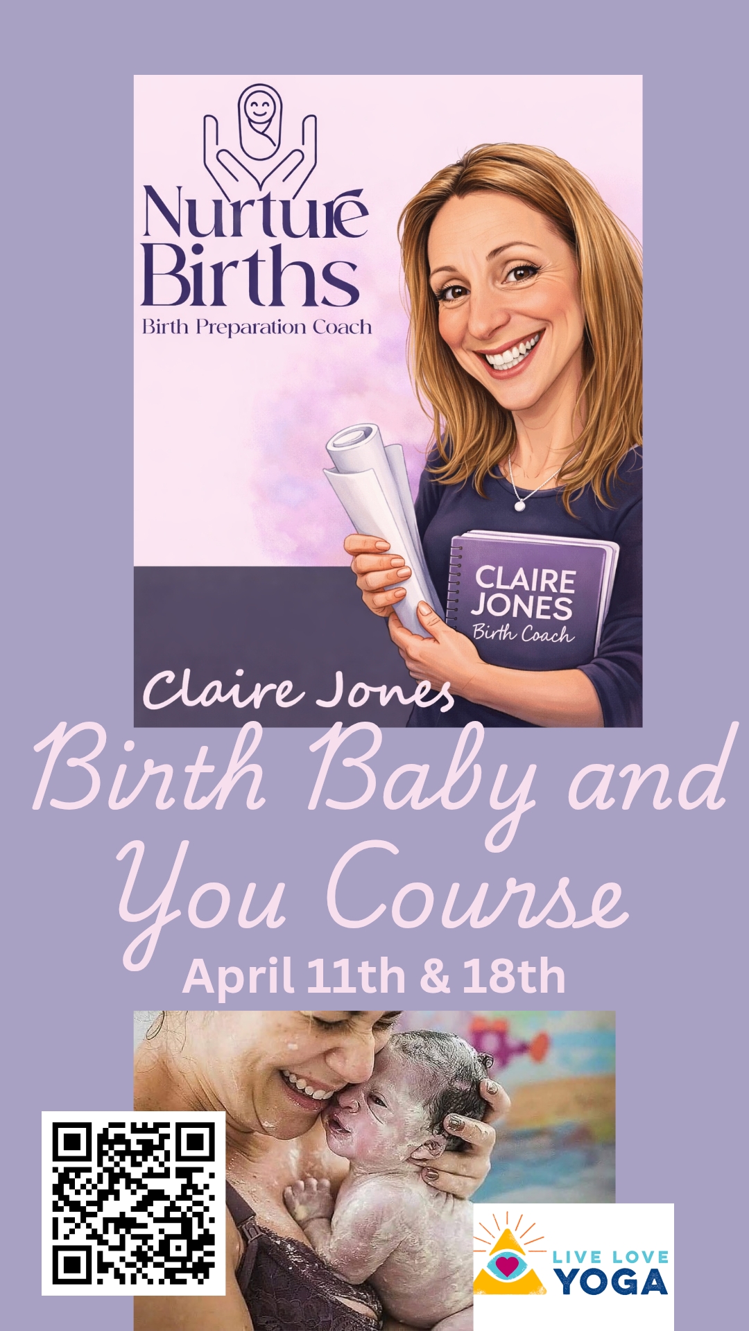 • Covers hypnobirthing techniques, stages of labour, yoga based Active Birth, birthing baby, the fourth trimester and infant feeding.